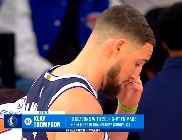 本场比赛,独行侠前锋克莱-汤普森三分球7中4得到14分5篮板2助攻2抢断,此役过后他本赛季的三分命中数也超过200个。据统计,这是他职业生涯第10个赛季三分命中数超越200个,历史第二多。排在第一的是克莱的前队友斯蒂芬-库里,库里生涯共有12个赛季三分命中数超过200个。