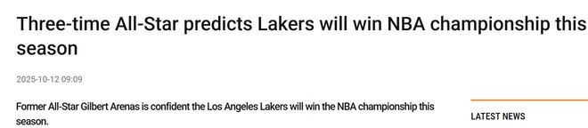 雷速体育10月12日讯 据欧洲媒体BasketNews报道,昔日NBA全明星球员阿里纳斯对新赛季的湖人充满信心,他预测湖人新赛季将夺得总冠军,一不小心可能两连冠。